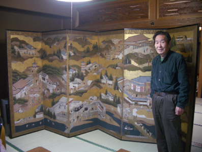 大間からは新田繁さん所有の屏風が持ち込まれ、