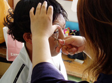 大間崎レストハウスのカーテンの向こう。 エビ姉に、ねっとりとメイクをしてもらって まんざらでもないりょういぢ。